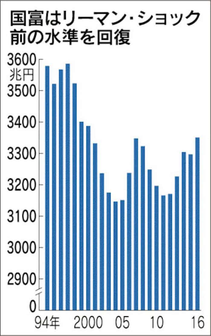 国富3350兆円 16年ぶり高水準 日本経済新聞