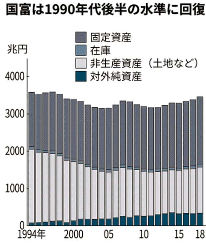 国富 年ぶり水準に回復 18年末3457兆円 日本経済新聞