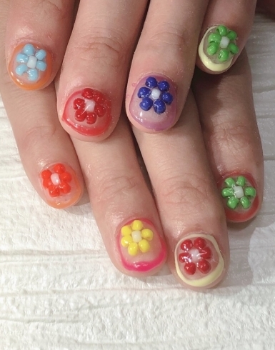 カラフルキュートなビーズネイル 若松区高須 ネイルサロン 若松区高須ネイルサロン ユーネイル シンプルから大人かわいいジェルネイル
